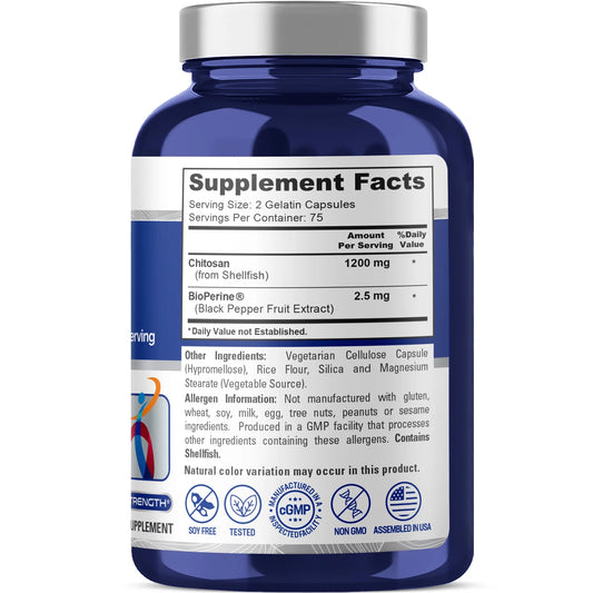 Chitosan 1200Mg, 150 Capsules - Non-Gmo, Soy Free, Dietary Supplement for Unisex Adult Health & Wellness